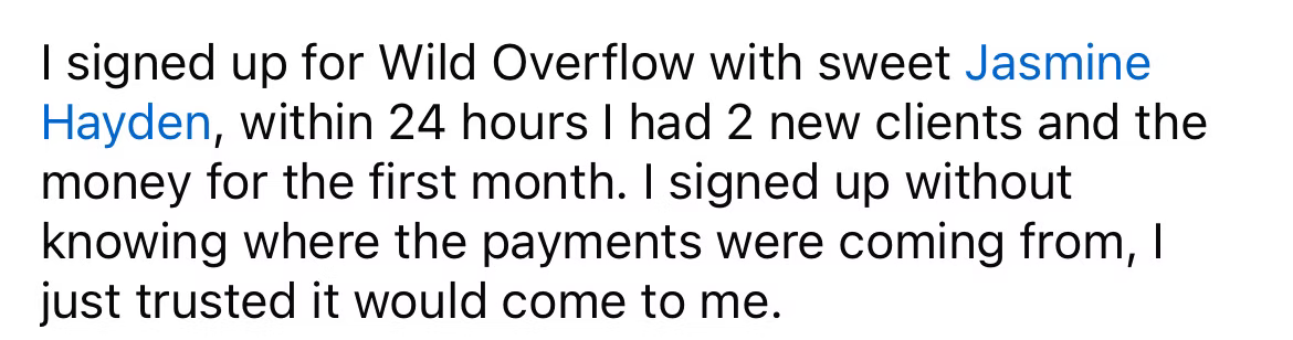 $20k in 10 days after joining Wild Overflow receiving more than any month ever since starting her business.